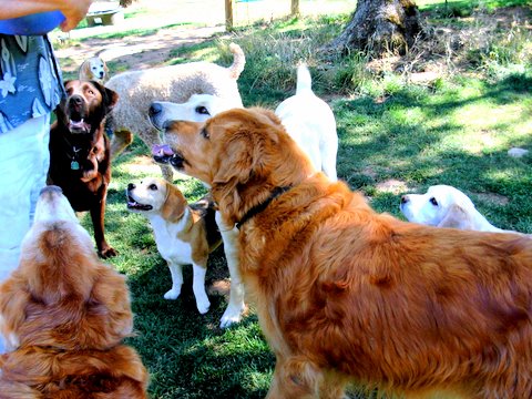 On a normal day, dogs are released to take care of business while the kennels are being tidied.